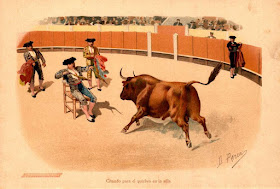 • La Lidia. Revista raurina, Madrid 1891. The magazine contained scenes of bullfights and portraits of popular matadors. La Lidia was published between 1882 and 1900 and the chromolithography’s contributed to a great extent to the popularity of the magazine and the diffusion of the important changes that were taking place in the artistic approach of tauromachy. Daniel Perea [1836-1909] was artistic director of the magazine and is 1 of the 3 (besides Jose Chaves and Lizcano Angel) who illustrated this bullfighting periodical.